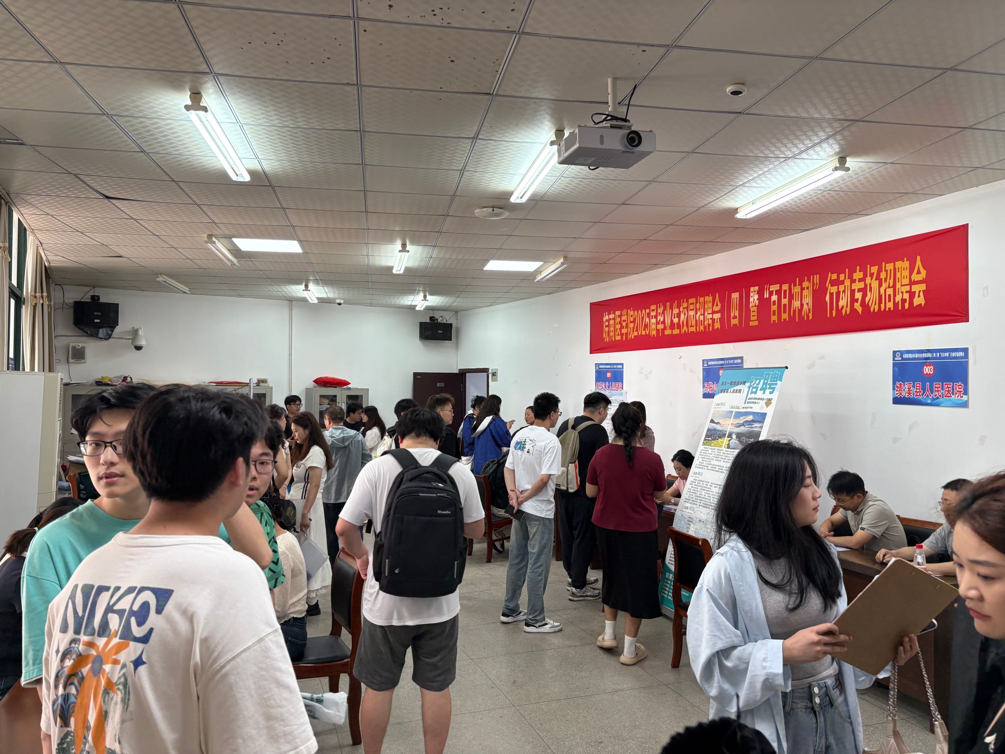 为抓住毕业生离校前促就业工作“黄金期”,助力2025届毕业生高质量充分就业,6月16日,我校在滨江校区(北区)毕业生就业指导中心举办2025届毕业生春季第四场校园招聘会暨“百日冲刺”行动专场招聘会。本次招聘会汇聚了20余家优质用人单位,涵盖公立医院、生物医药企业、健康科技公司等多元领域,精准释放就业岗位近500个,吸引400余名毕业生到场求职,现场投递简历1000余份,初步达成就业意向50余人。