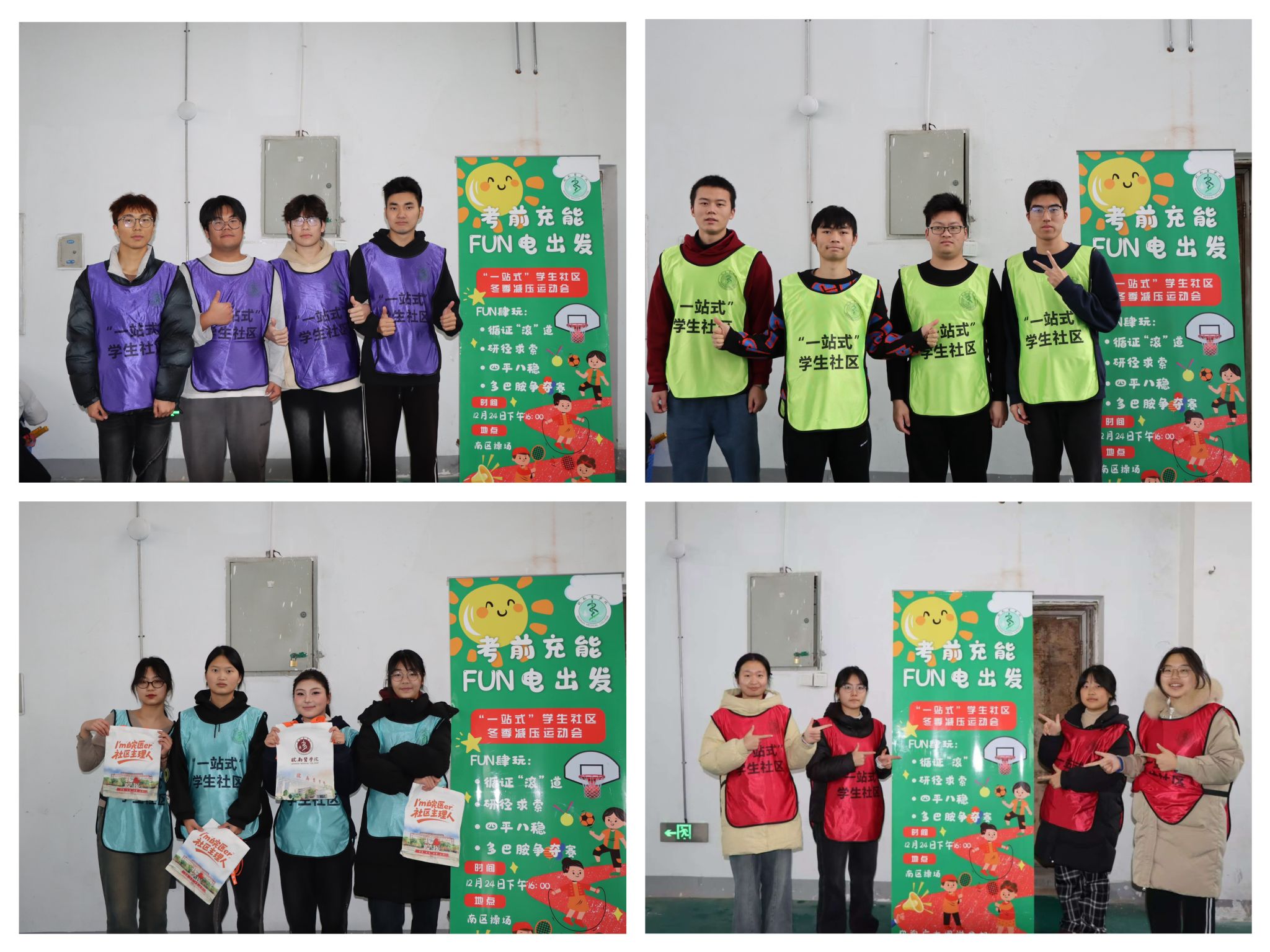 为有效缓解学生期末考试压力,引导学生走出宿舍、积极锻炼,12月24日下午,学校“一站式”学生社区在南区服务站成功举办“考前充能,FUN电出发——冬季减压运动会”。本次活动覆盖南区4个学院的6栋公寓,经报名推荐,最终组成6支公寓代表队展开趣味角逐。