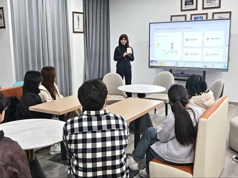 英语角社团负责人张轶老师带领大家走进了圣埃克苏佩里的经典作品The Little Prince(《小王子》)。她以温柔生动的语言,解读了原著中关于爱、责任与孤独的隐喻,引导同学们在快节奏的学习生活中重新审视内心、珍视真实的情感联结。现场互动热烈,不少同学分享了阅读The Little Prince时的感动与启发。