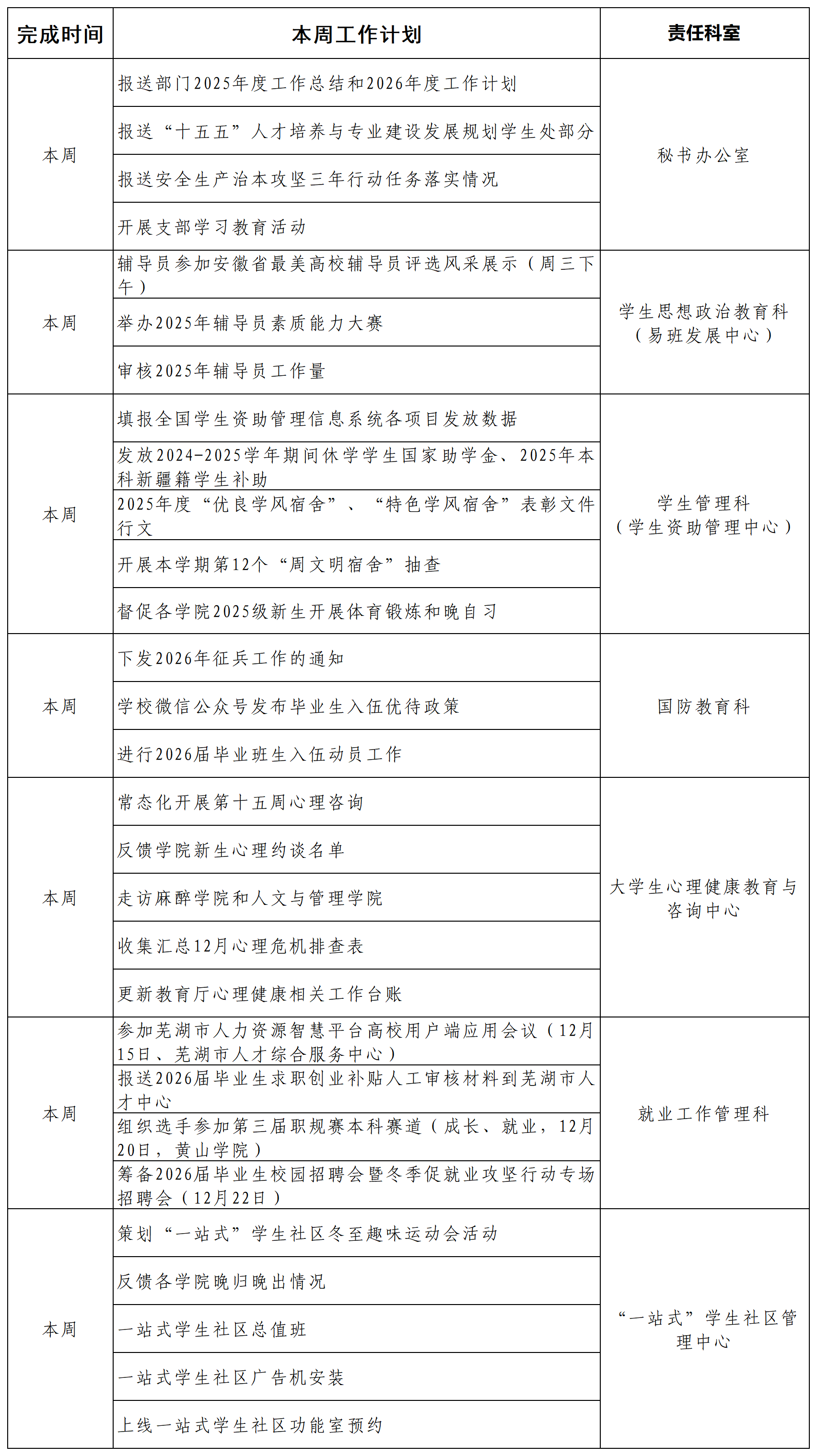 学生处周工作计划(第15周)