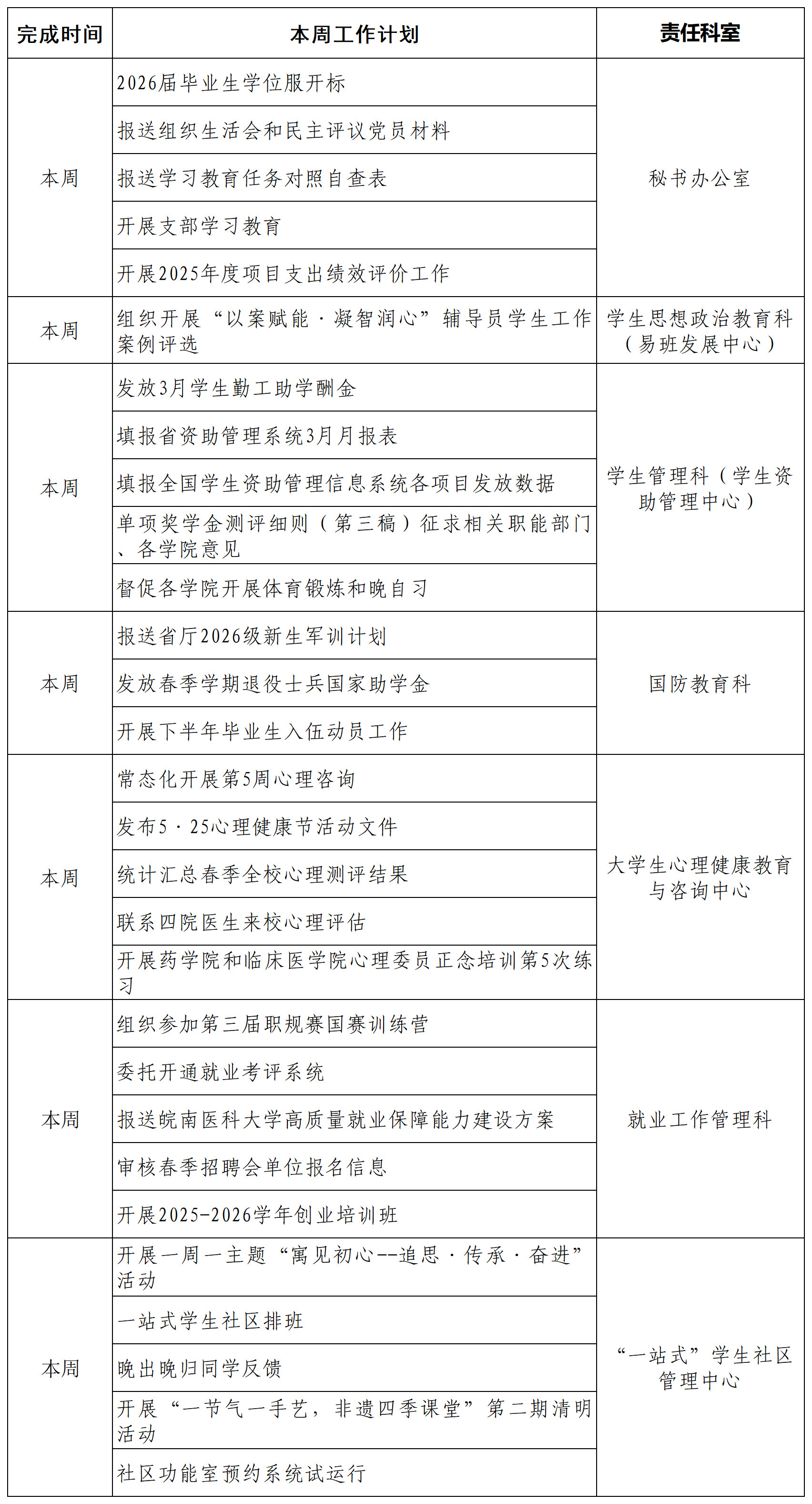 学生处周工作计划(第5周)