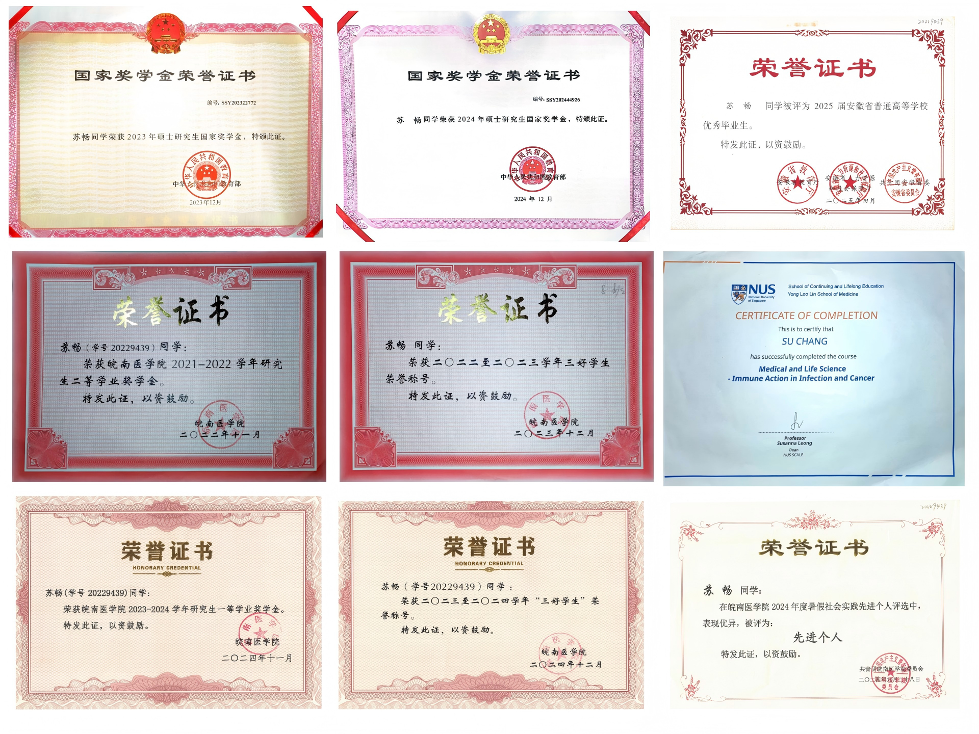 苏畅,男,中共党员,研究生学院2022级妇产科学专硕研究生,曾连续两年获研究生国家奖学金,2025年度安徽省普通高等学校优秀毕业生,目前已被厦门大学录取攻读学术型博士学位。